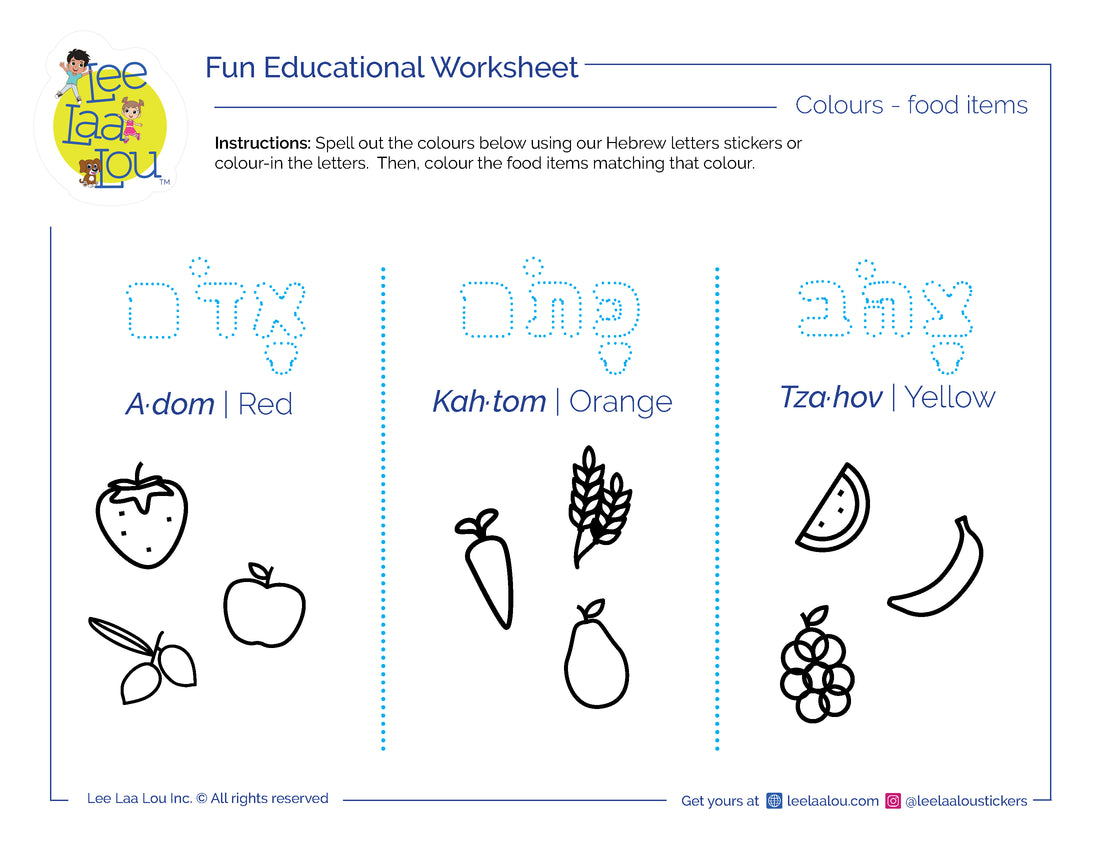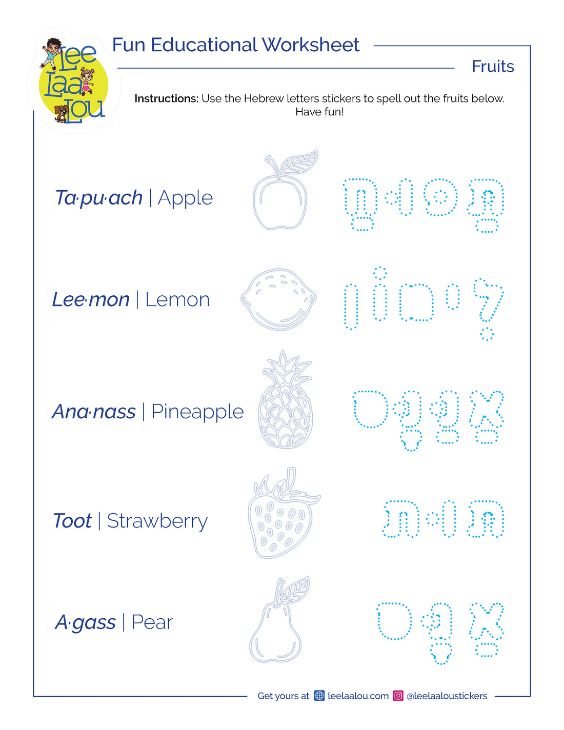 Use our Hebrew Letters stickers to spell out the name of the fruits. FREE! Simply...