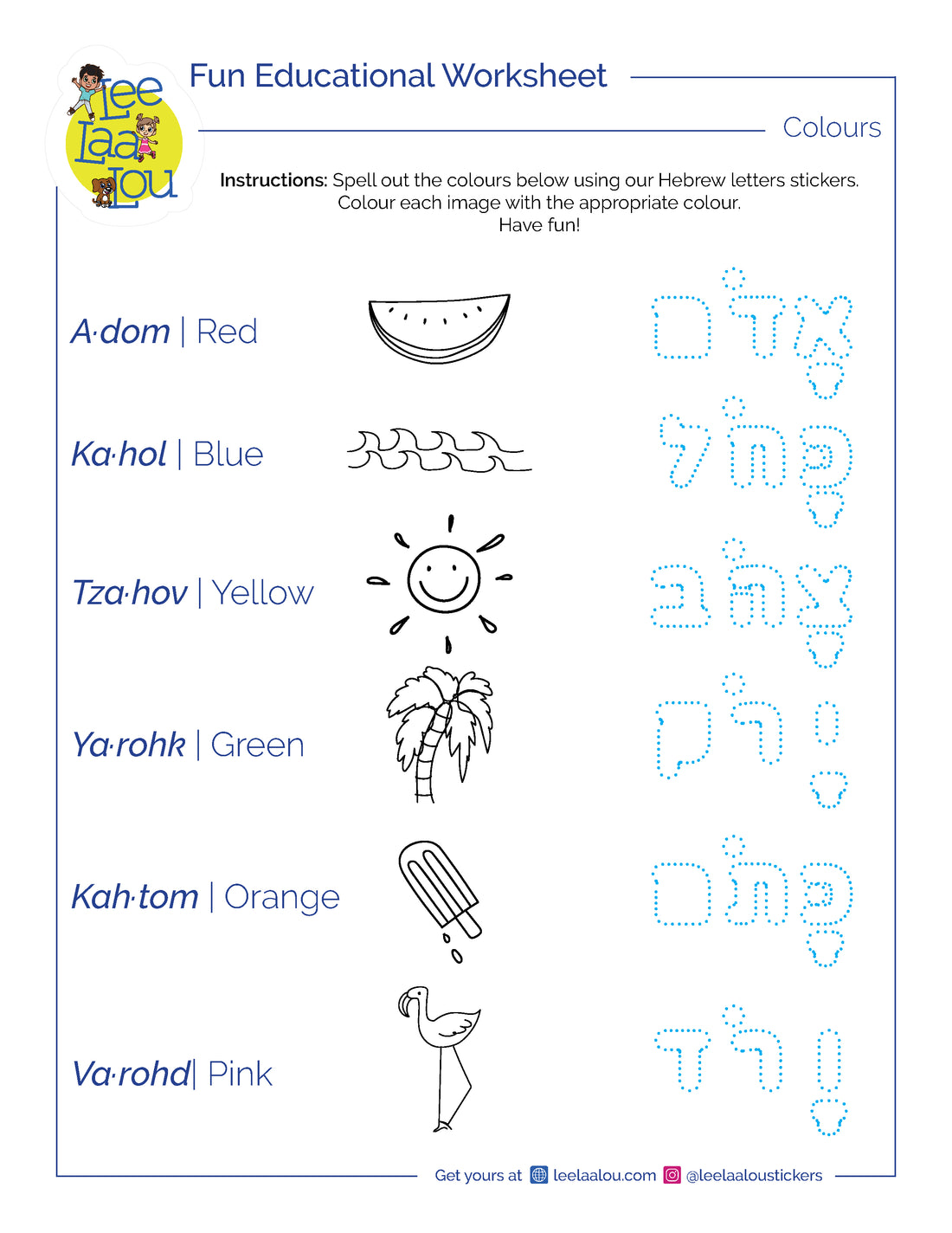 Spell out the colours below using our Hebrew letters stickers or just trace them using...