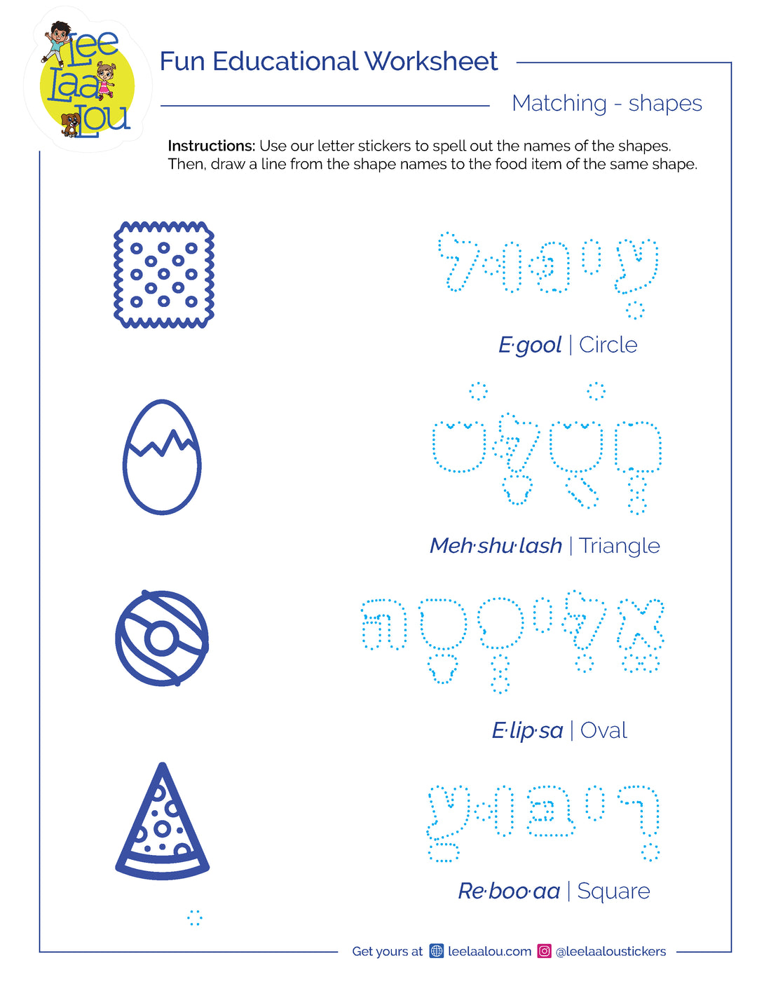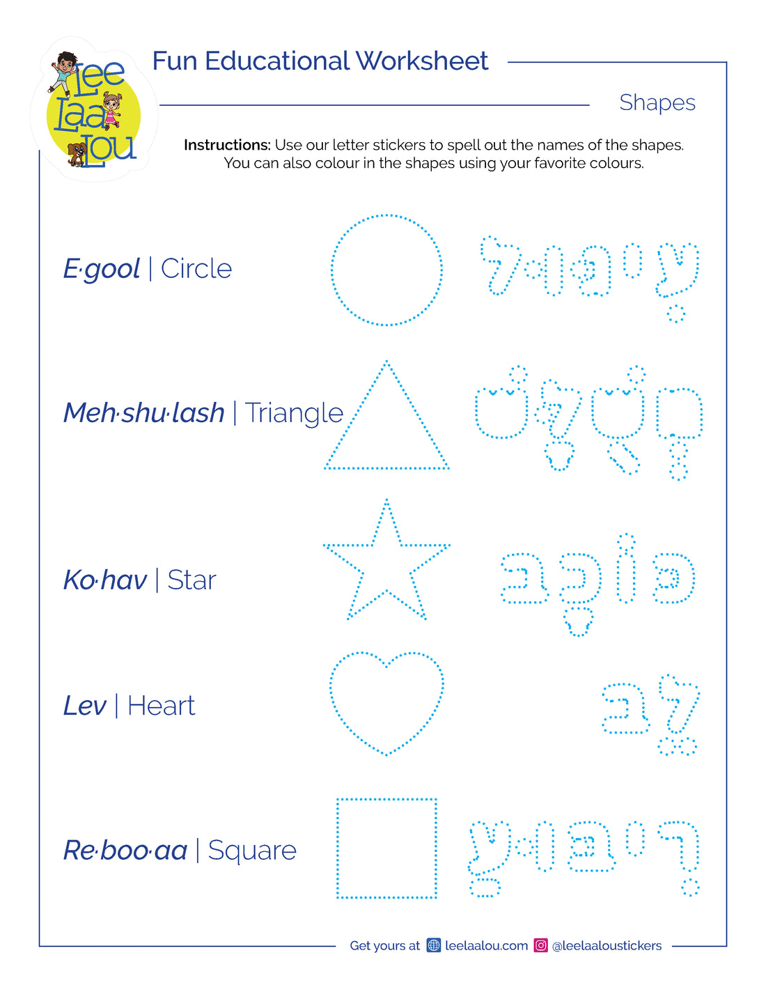 Learn how to say and spell different shapes in Hebrew. Use our letter stickers to...
